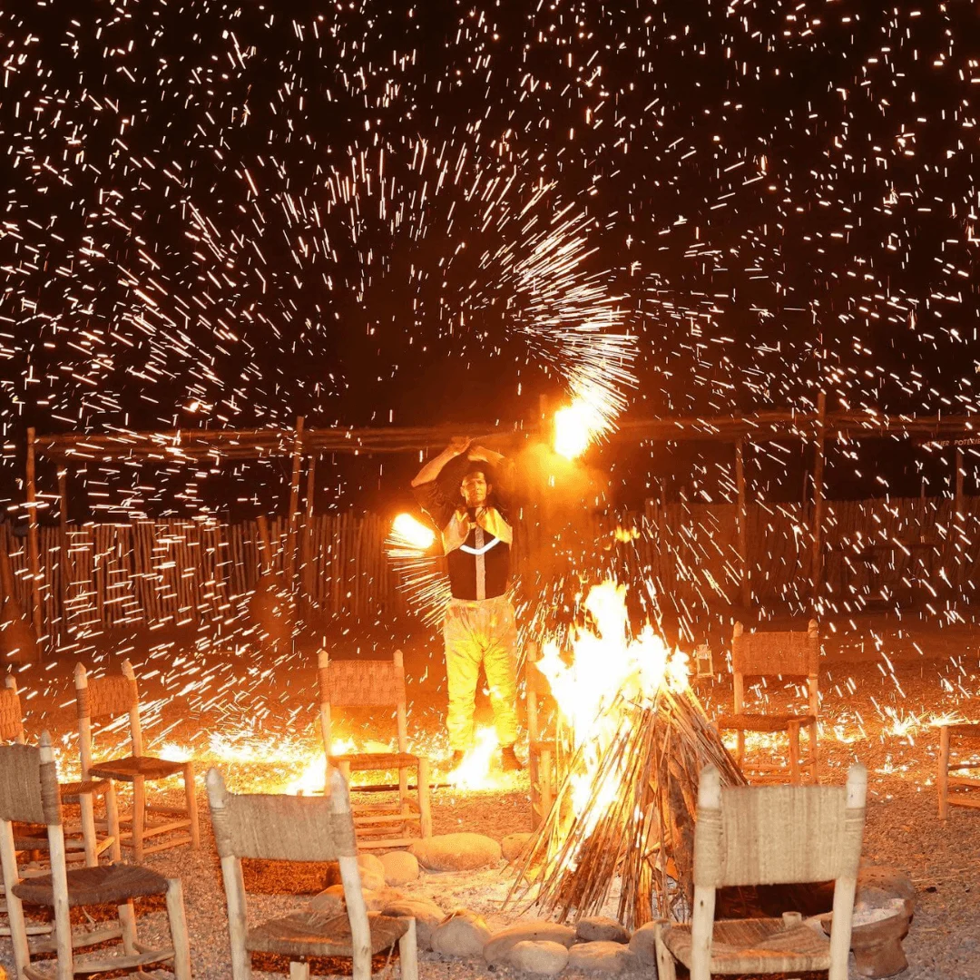 - Enjoy a traditional Moroccan dinner under the stars followed by a fire show